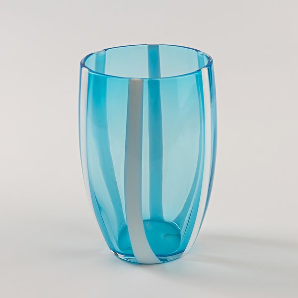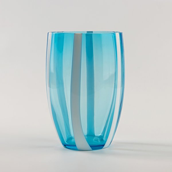 O Copo Gessato da marca italiana Zafferano é uma peça que reflete o equilíbrio entre tradição e modernidade. Criado pelo designer Federico de Majo em 2006, o modelo integra a coleção Gessato, conhecida pelas suas linhas elegantes e refinadas. As listras em pasta de vidro branca, aplicadas sobre o vidro transparente, criam um efeito visual marcante que valoriza a pureza da forma e o brilho do material.