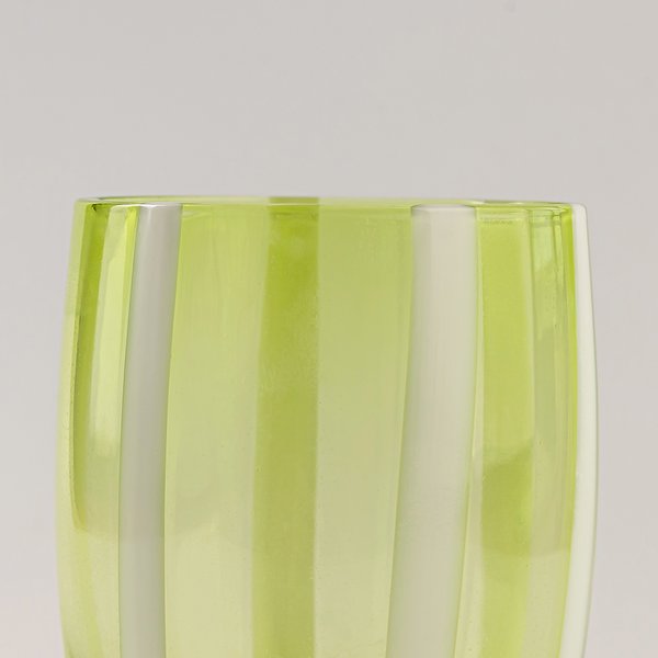 O Copo Gessato da marca italiana Zafferano é uma peça que reflete o equilíbrio entre tradição e modernidade. Criado pelo designer Federico de Majo em 2006, o modelo integra a coleção Gessato, conhecida pelas suas linhas elegantes e refinadas. As listras em pasta de vidro branca, aplicadas sobre o vidro transparente, criam um efeito visual marcante que valoriza a pureza da forma e o brilho do material.