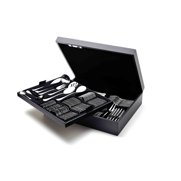 Produzido com materiais de alta qualidade e acabamento refinado, é ideal para guardar faqueiros St. James de até 101 peças, garantindo a conservação e o brilho dos utensílios por muito mais tempo. O interior estruturado mantém cada talher no lugar, enquanto o exterior fosco adiciona um toque contemporâneo à decoração.