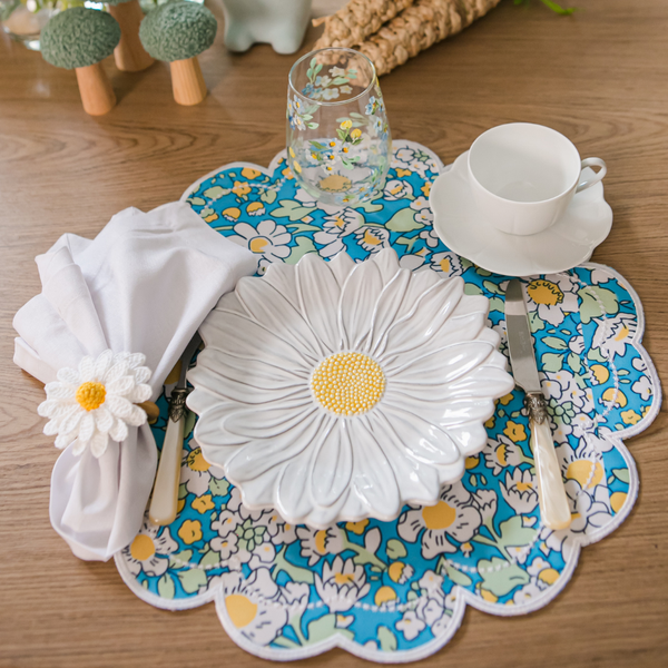 Sofisticação nos detalhes e leveza que encanta. O Jogo Americano Marguerite traz a beleza das margaridas em contraste com o fundo azul, proporcionando um toque delicado e elegante à mesa. Feito em tela de poliéster, possui acabamento em bordado branco que evidencia o cuidado e o requinte característicos da FerDan Home. Um convite para transformar momentos cotidianos em celebrações repletas de estilo e bom gosto.