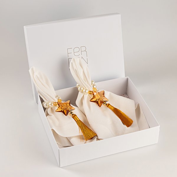 O Kit Tassel Estrela Âmbar une elegância e delicadeza em cada detalhe. O porta-guardanapo combina contas peroladas, estrela em acrílico âmbar e tassel dourado, criando um brilho sutil que transforma a mesa em um gesto de encanto. Os guardanapos em linho misto trazem leveza, caimento impecável e um toque acolhedor, perfeitos para composições que transitam do clássico ao contemporâneo. Um conjunto que celebra o prazer de receber e transforma cada refeição em um momento especial. Vida nos detalhes.