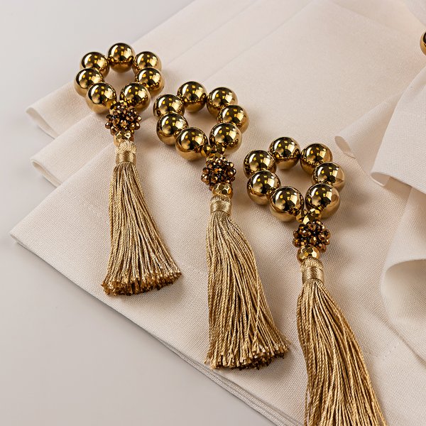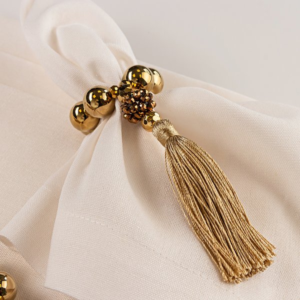 O Kit Tassel Ouro Velho une elegância atemporal e o cuidado artesanal que define a FerDan Home. Os porta-guardanapos combinam contas douradas e um delicado tassel bege, criando um contraste sofisticado com o pingente em ouro velho — um detalhe que traz charme vintage e eleva qualquer composição. Acompanhados de guardanapos em linho misto de alta qualidade, de toque macio e caimento impecável, o kit transforma a mesa em um gesto de acolhimento. Uma união de beleza, propósito e autenticidade para celebrar cada momento. Vida nos detalhes.