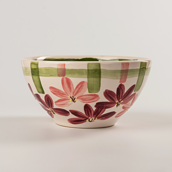 Com traços florais e toque artesanal, a Petisqueira Alta Blossom transforma o servir em celebração. Feita em cerâmica e pintada à mão, traz uma harmonia de flores e xadrez nas cores rosé, bordô e verde — combinação delicada que revela um cuidado em cada pincelada. Ideal para receber bem, com charme e afeto. Uma peça que é puro encanto à mesa: única, sofisticada e feita para quem valoriza os detalhes.