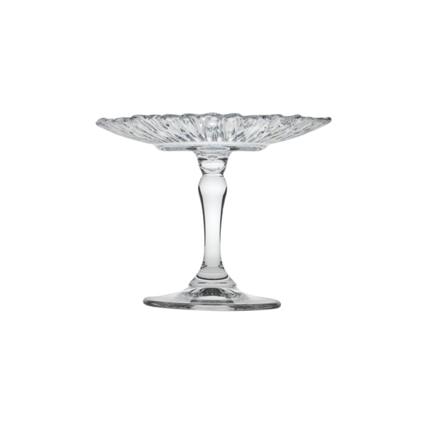 O Porta Cupcake Gérbera foi criado para transformar pequenas sobremesas em grandes destaques. Feito em vidro transparente de alta qualidade, exibe frisos delicados que refletem a luz com sutileza e elegância. Seu formato com pé alto confere presença e leveza, valorizando cada detalhe dos doces expostos.