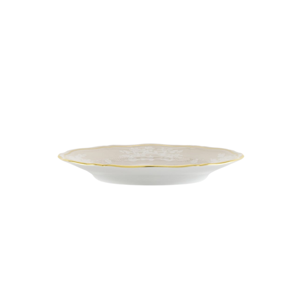 Apresentamos o Bowl Oriente Italiano Meringa da renomada marca Richard Ginori, uma peça de refinada porcelana no formato clássico Antico Doccia, na cor bege, com uma delicada decoração em branco e embelezada com um distintivo fio de ouro puro.
