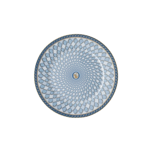 Pequeno e com uma forma perfeita, este prato em porcelana é inspirado pelos designs geométricos do meio artístico de Wiener Werkstätte. O motivo octogonal num azul vistoso confere um toque jovial às iguarias de um lanchinho da tarde. Este prato faz parte de uma colaboração exclusiva com a marca de porcelana Rosenthal.