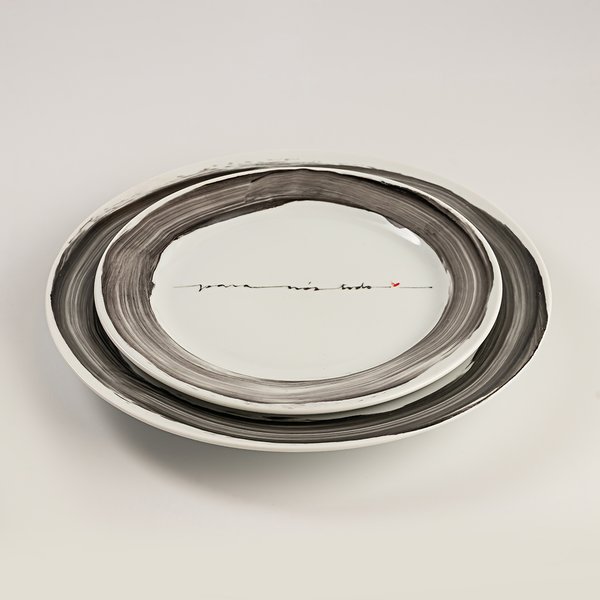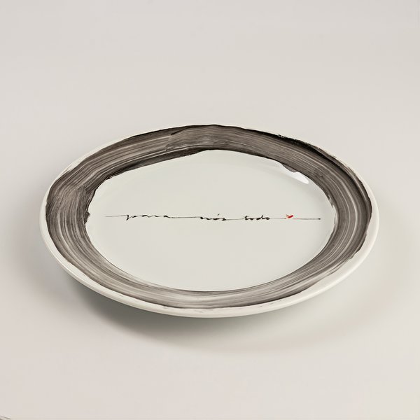 Prato de sobremesa em porcelana branca, pintado à mão com o tema do Xadrez do Amor, inspirado no poema catalão Scachs d’amor. Escrito há quase 550 anos, registra a ocasião em que Marte tenta obter o amor de Vênus. O poema é o registro lírico dos 61 movimentos num jogo de xadrez e mais 3 estrofes introdutórias, totalizando 64 estrofes e assim completando a alegoria ao jogo que tem 64 casas.