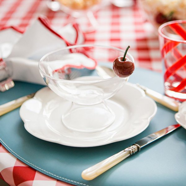 Pequenos detalhes que encantam. A Taça de Sobremesa Cherry é feito em acrílico com aplicação de cereja em resina — um toque lúdico e sofisticado para composições que celebram a beleza de receber bem. Ideal para transformar encontros à mesa em momentos afetivos, ele traduz o cuidado artesanal da FerDan em cada curva e acabamento. Uma peça delicada, cheia de personalidade, que traz charme e exclusividade ao seu ritual de mesa posta.