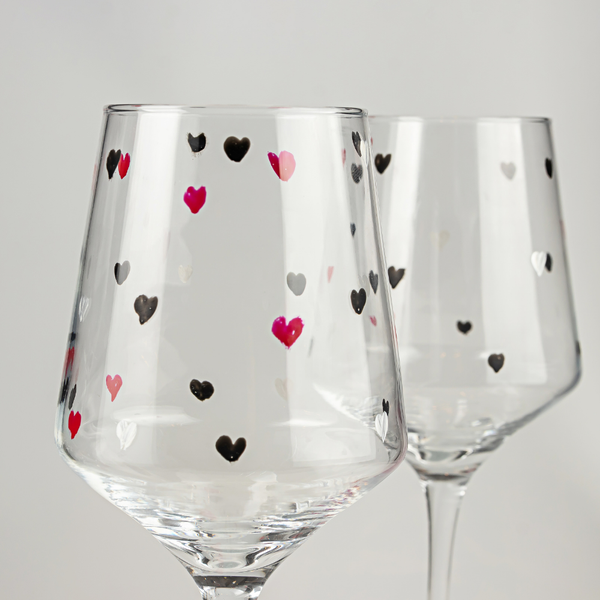 Eleve suas celebrações românticas com as Taças de Vinho Xadrez do Amor. Cada taça é uma obra-prima única, meticulosamente pintada à mão com padrões de corações vermelhos, pretos e pérola. Feitas para os amantes do vinho que buscam uma experiência verdadeiramente especial, essas taças adicionam um toque de elegância e paixão a qualquer ocasião. Surpreenda seu par com este conjunto encantador, ideal para brindar momentos especiais juntos.