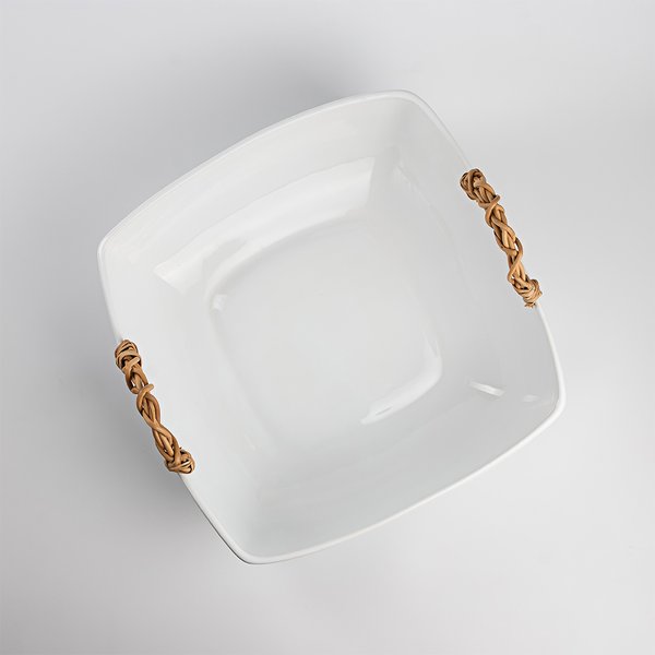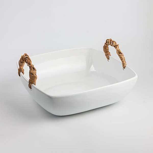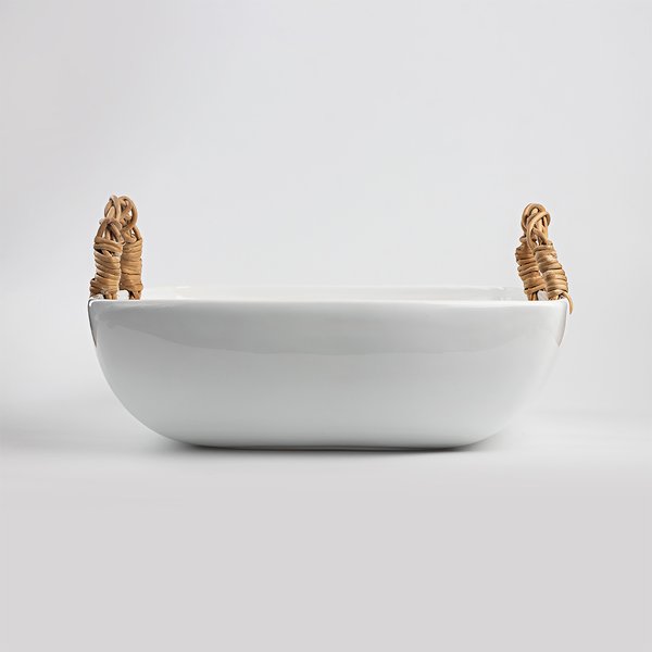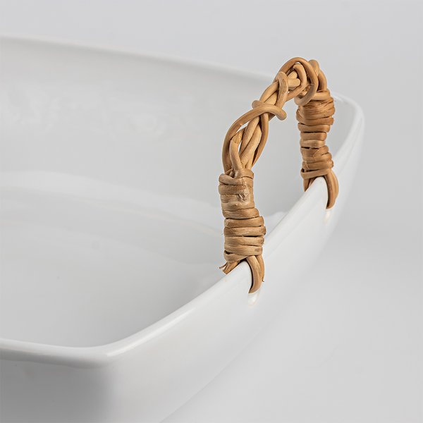A Travessa com Junco é uma peça elegante e funcional, ideal para complementar a sua cozinha ou mesa de jantar. Fabricada em cerâmica faiança de alta qualidade, apresenta um acabamento branco clássico que combina com qualquer decoração. A alça de junco adiciona um toque rústico e natural, proporcionando uma pegada segura e confortável. Excelente escolha para quem valoriza design e funcionalidade em utensílios domésticos.