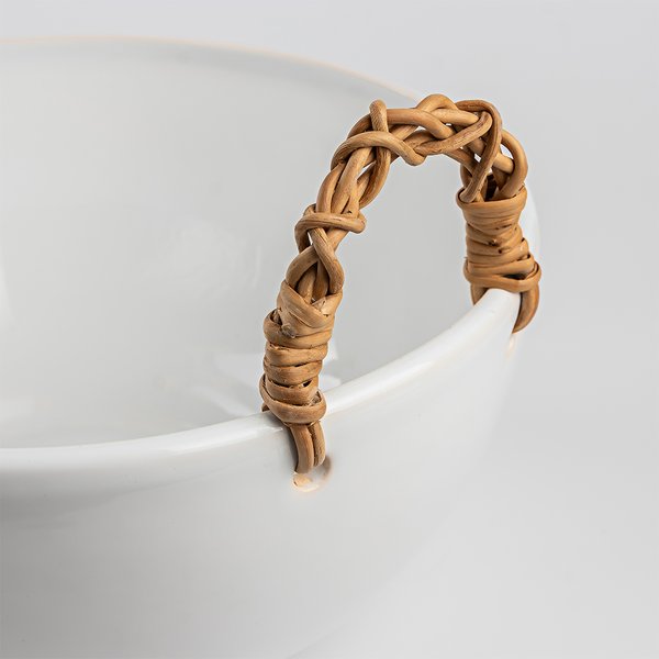 A Travessa com Junco é uma peça elegante e funcional, ideal para complementar a sua cozinha ou mesa de jantar. Fabricada em cerâmica faiança de alta qualidade, apresenta um acabamento branco clássico que combina com qualquer decoração. A alça de junco adiciona um toque rústico e natural, proporcionando uma pegada segura e confortável. Excelente escolha para quem valoriza design e funcionalidade em utensílios domésticos.