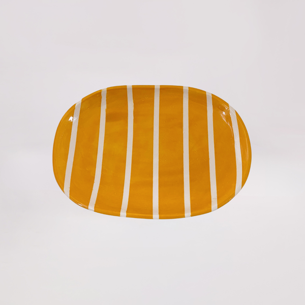 Apresentamos a Travessa Oval Backyard, uma peça artesanal que une elegância e funcionalidade à sua mesa. Feita em cerâmica, esta travessa possui um design encantador e contemporâneo, perfeito para realçar a apresentação de suas refeições. As listras amarelas pintadas à mão conferem um toque vibrante e único, tornando cada peça verdadeiramente especial. Ideal para servir pratos principais, acompanhamentos ou até mesmo petiscos, esta travessa é uma adição indispensável para qualquer ocasião, desde refeições informais até jantares sofisticados. Adicione um toque de estilo e sofisticação à sua mesa com a Travessa Oval Backyard.