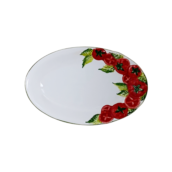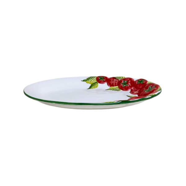 A Travessa Pomodori é uma peça encantadora e funcional para servir suas refeições com elegância. Esta travessa oval é feita de cerâmica de alta qualidade, garantindo durabilidade e resistência. Seu design único apresenta detalhes pintados à mão de tomates maduros e folhas de tomate em sua borda, trazendo um toque de frescor e sofisticação à mesa. Ideal para servir saladas, massas, assados e outras delícias, a Travessa Pomodori é perfeita para ocasiões especiais e também para o dia a dia. Eleve sua experiência gastronômica com esta peça indispensável na sua cozinha.