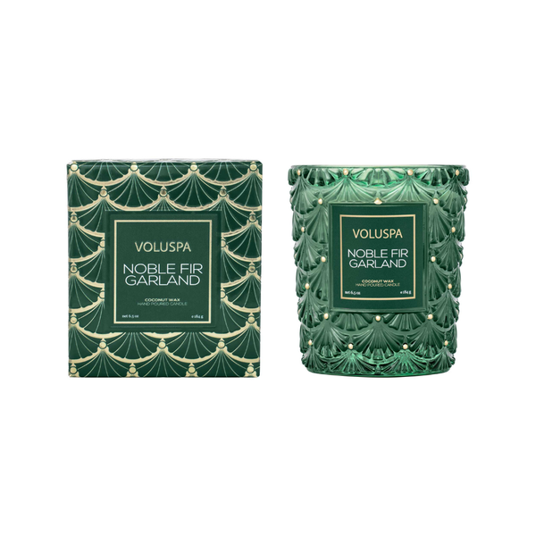 A Vela Clássica Noble Fir Garland da Voluspa traz o espírito das festividades para o seu ambiente com uma fragrância amadeirada cativante. Suas notas de agulhas de abeto nobre, madeira de cedro, âmbar brilhante e almíscar de cashmere criam uma atmosfera que remete a uma lareira cercada por guirlandas verde-esmeralda e toques frescos de alecrim. O frescor da árvore de Natal e a elegância das especiarias como o cardamomo evocam memórias de celebrações inesquecíveis. Com 40 horas de queima, a vela é feita à mão com a exclusiva mistura de cera de coco da Voluspa, que proporciona uma queima limpa. A embalagem em vidro decorativo e sua caixa presenteável elevam a experiência. Além disso, todos os produtos são livres de ftalatos, pesticidas, parabenos e sulfatos, e não são testados em animais.